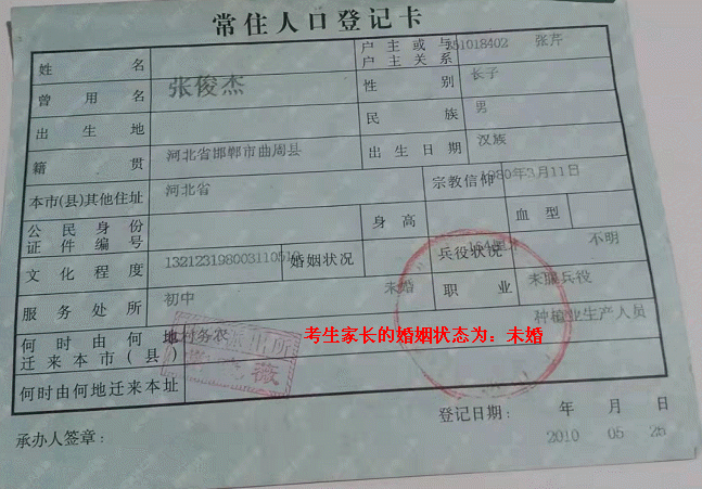 户口页更新指南(军校 / 警校政审必备) 一、更新核心目的 针对计划报考军校、警校的考生,三代户口本信息需真实、完整、一致,避免因户口页信息错误(如婚姻状态不符、家庭成员缺失等)导致政审不通过,影响录取。 二、需重点核查的 3 类关键信息 1、 婚姻状态:家长婚姻状态需与实际一致(如已婚 / 离异需及时更新,避免 “未婚” 等错误标注,参考附图案例); 2、 家庭成员信息:需完整登记考生父母、祖父母 / 外祖父母(三代直系亲属)信息,无遗漏、无错误(如姓名、身份证号、关系标注); 3、 户籍地址:考生与直系亲属户籍地址需清晰一致,若有迁户记录需确保户口页标注完整,无地址模糊、信息缺失情况。 三、实操更新流程(3 步完成) 1、 材料准备: 携带①原有三代户口本 ②家长身份证 ③婚姻状况证明(结婚证 / 离婚证等,针对婚姻状态变更) ④迁户证明(如有迁户情况); 2、 办理渠道:前往户籍所在地派出所户籍办理窗口,说明 “高考军校 / 警校报考政审用途”,申请户口页信息更新; 3、 时效提示:建议提前 3-6 个月办理,避免临近政审截止时间因材料问题延误,办理完成后务必核对信息无误再留存。 四、附图说明 ▶ 附图:户口页婚姻状态错误案例(家长实际已婚,户口页标注 “未婚”) ▶ 风险提示:此类信息与实际不符将直接影响军校 / 警校政审结果,务必及时更新核实! 五、常见问题提示 1、 异地户籍考生:需按户籍地派出所要求办理,可提前电话咨询当地政审材料具体要求,避免遗漏; 2、 家庭成员信息变更:如直系亲属增减、关系变动,需同步更新户口页,确保政审材料真实反映家庭情况; 3、 户口页丢失 / 破损:需先申请补办户口本,再办理信息更新,补办流程可咨询户籍所在地派出所。 补充说明 1、 围绕 “政审通过” 核心需求,补充 “核查要点 + 实操流程 + 风险提示”,让家长知道 “查什么、怎么办、为什么急”; 2、 结合附图案例具象化问题,增强家长重视度,避免抽象表述; 3、 突出 “提前办理” 的时间要求,呼应 “早约早准备” 的核心优势,衔接前文预约服务逻辑; 4、表述简洁实操,序号后统一用顿号,关键信息加粗,适配线上平台快速阅读。